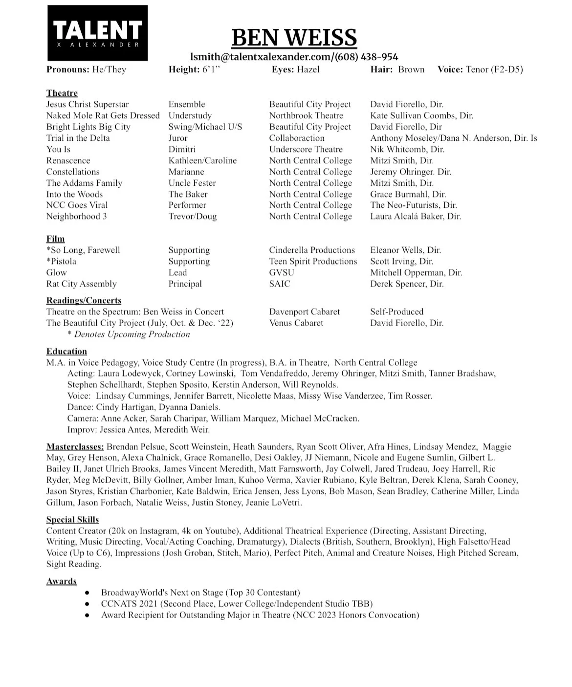 RESUMES download performance resume download coaching resume download headshot 1 download headshot 2 // // upcoming events for Ben ben weiss voice & acting studio media contact ben